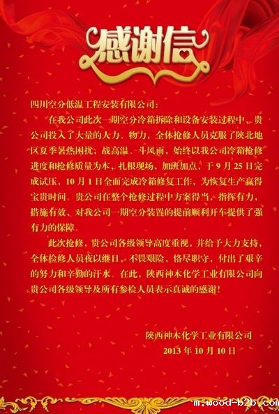 此次抢修,贵公司各级领导高度重视,并给予大力支持,全体检修人员夜以继日,不畏艰险,恪尽职守,付出了艰辛的努力和辛勤的汗水。在此,陕西神木化学工业有限公司向贵公司各级领导及所有参检人员表示真诚的感谢!