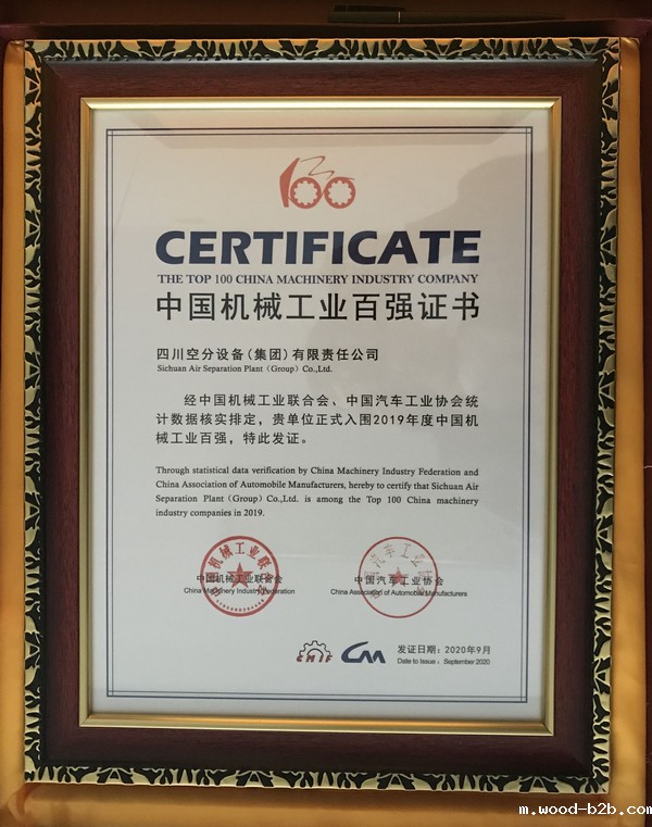 近日,我公司被评为2019年中国机械工业百强企业,位列第70名。这项荣誉代表着客户、行业和社会对四川空分集团的肯定和认可。