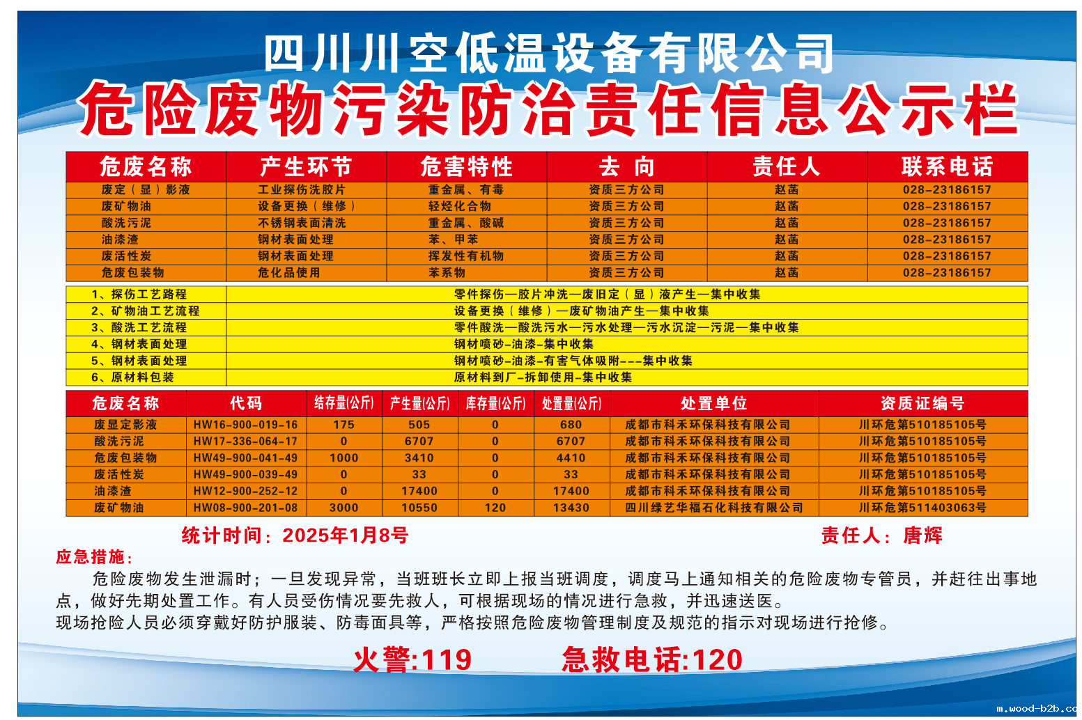 四川川空低温设备有限公司危险废物污染防治责任信息公示栏