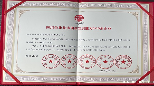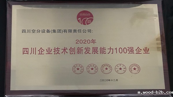 我公司荣获2020年——“四川企业技术创新发展能力100强企业”