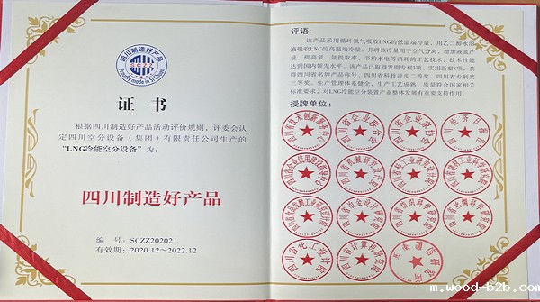 我公司生产的“LNG冷能空分设备”——被评为“四川制造好产品”