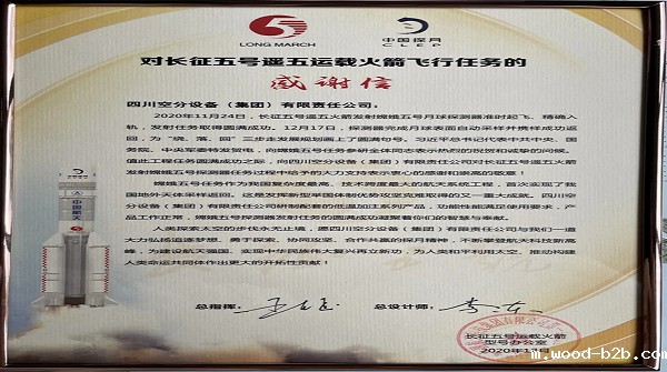 长征五号运载火箭型号办公室向我公司发来感谢信