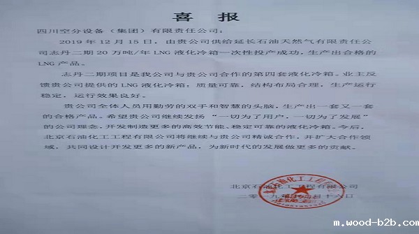 喜讯:由四川空分设计制造的志丹二期20万吨/年LNG液化冷箱一次性投产成功
