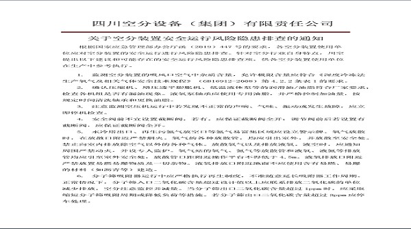 关于空分装置安全运行风险隐患排查的通知