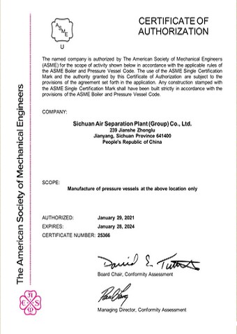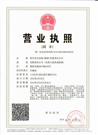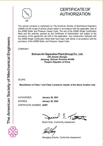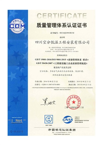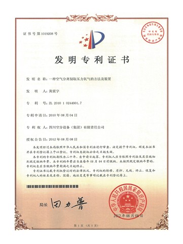 发明专利证书-一种空气分离制取压力氧气的方法及装置