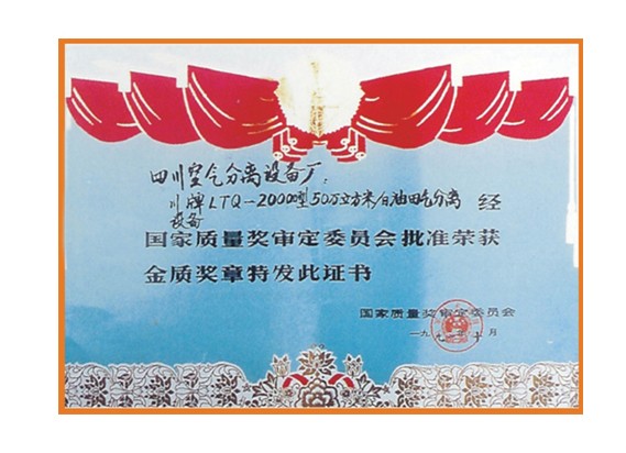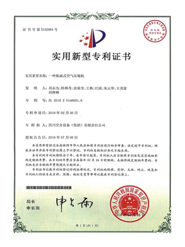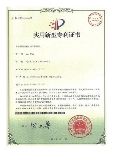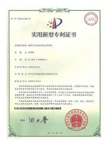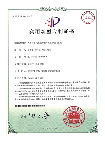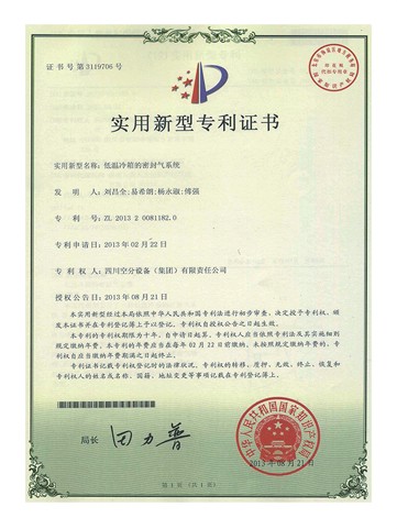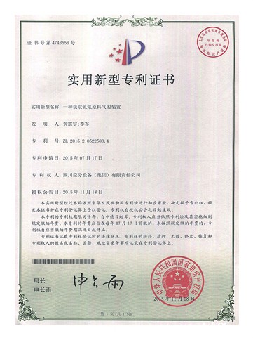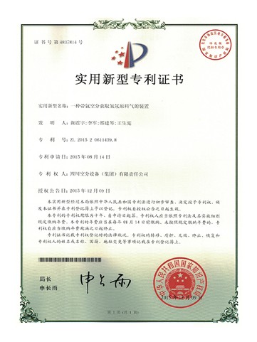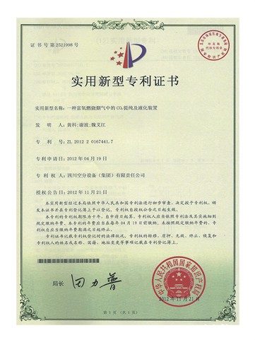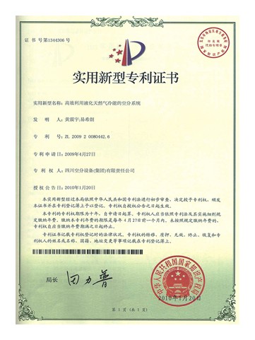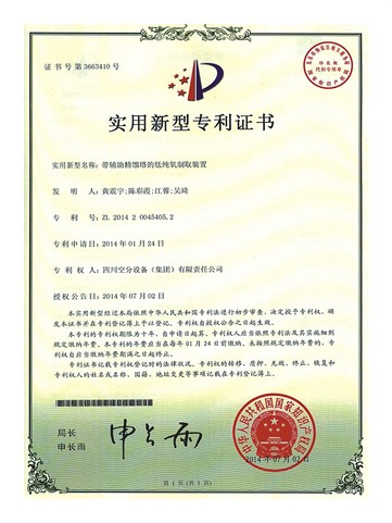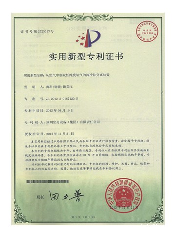 实用新型专利证书-从空气中制取低纯度氧气的深冷法分离装置