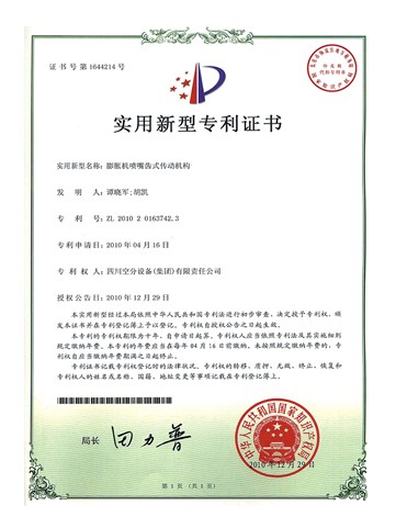 实用新型专利证书-膨胀机喷嘴齿式传动机构