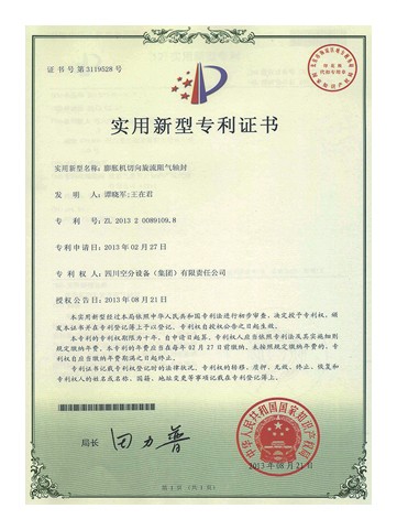 实用新型专利证书-膨胀机切向旋流阻气轴封