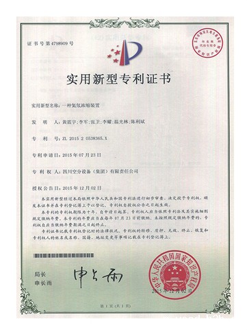 实用新型专利证书-带制冷循环的低能耗制氮装置