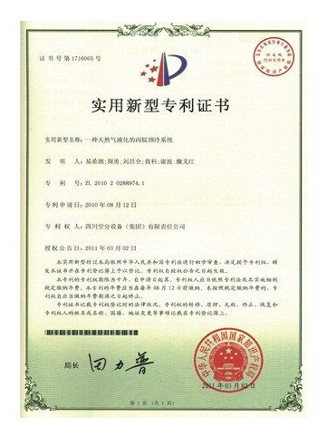 实用新型专利证书-一种天然气液化的丙烷预冷系统